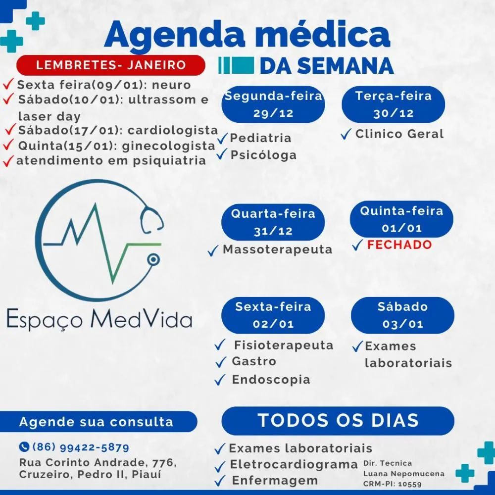 Acompanhe os atendimentos disponíveis nesta semana no Espaço Saúde MedVida!