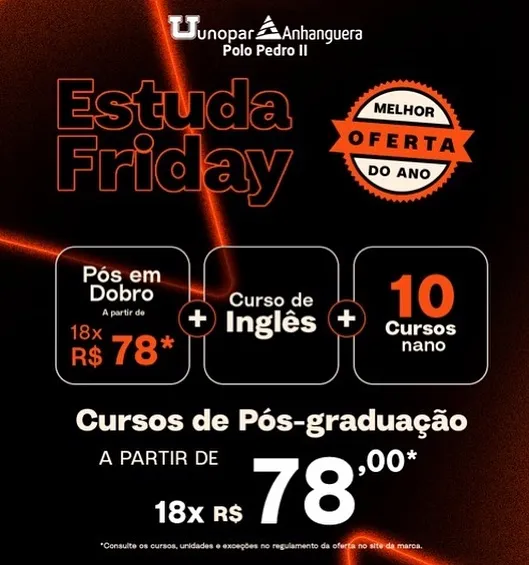 Últimos dias da Estuda Friday na Unopar Anhanguera: pós-graduação com preço imperdível!