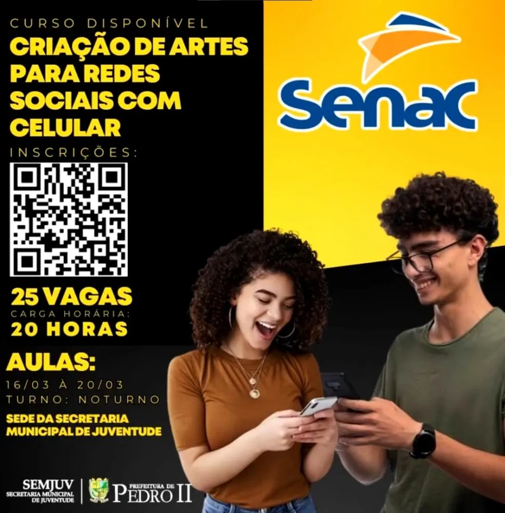 Secretaria Municipal de Juventude irá promover nos dias 6 e 7 de março o Conexão Pedro II, e o curso criação de Artes para Redes Sociais com celular; confira!