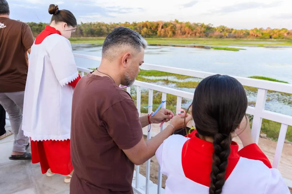 A concentração teve início com um gesto simbólico e de profunda fé: mais de mil fitinhas foram distribuídas para que os devotos fizessem seus pedidos e orações a São Francisco, amarrando-as nas grades do monumento. Cada fita representava uma prece, um agradecimento, um testemunho de devoção. O local se transformou em um verdadeiro santuário a céu aberto, reafirmando Lagoa de São Francisco como um dos principais pontos de peregrinação e devoção franciscana no Piauí.