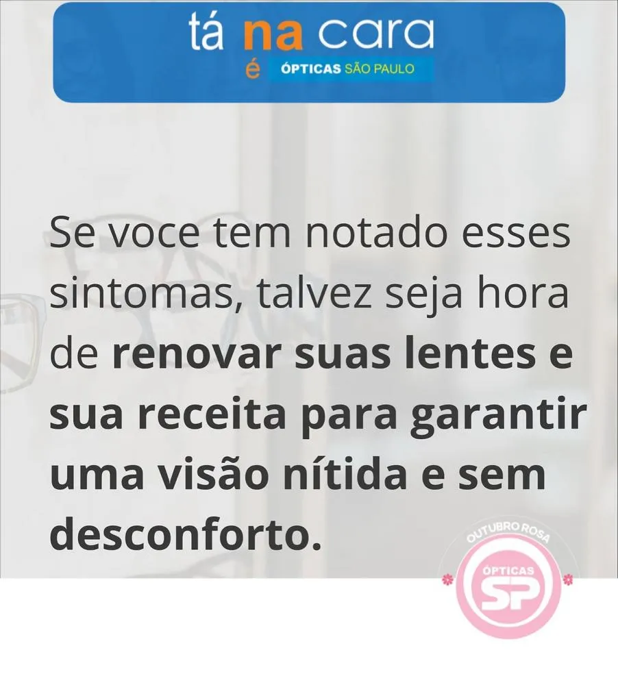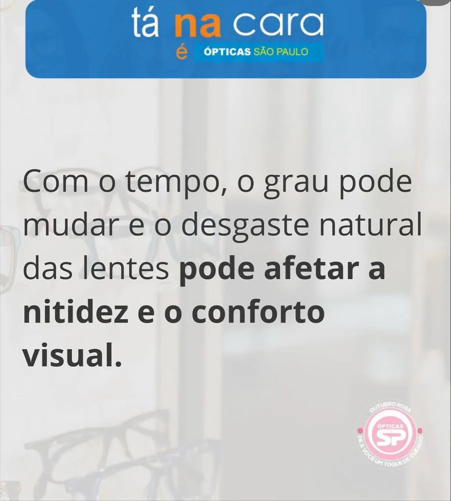 Nas Ópticas São Paulo, você encontra opções de armações e lentes que unem durabilidade, qualidade e design atual, tudo pensado para diferentes estilos e necessidades. Nossa equipe está pronta para atender com agilidade e orientar na escolha ideal, com condições de pagamento que facilitam a troca.