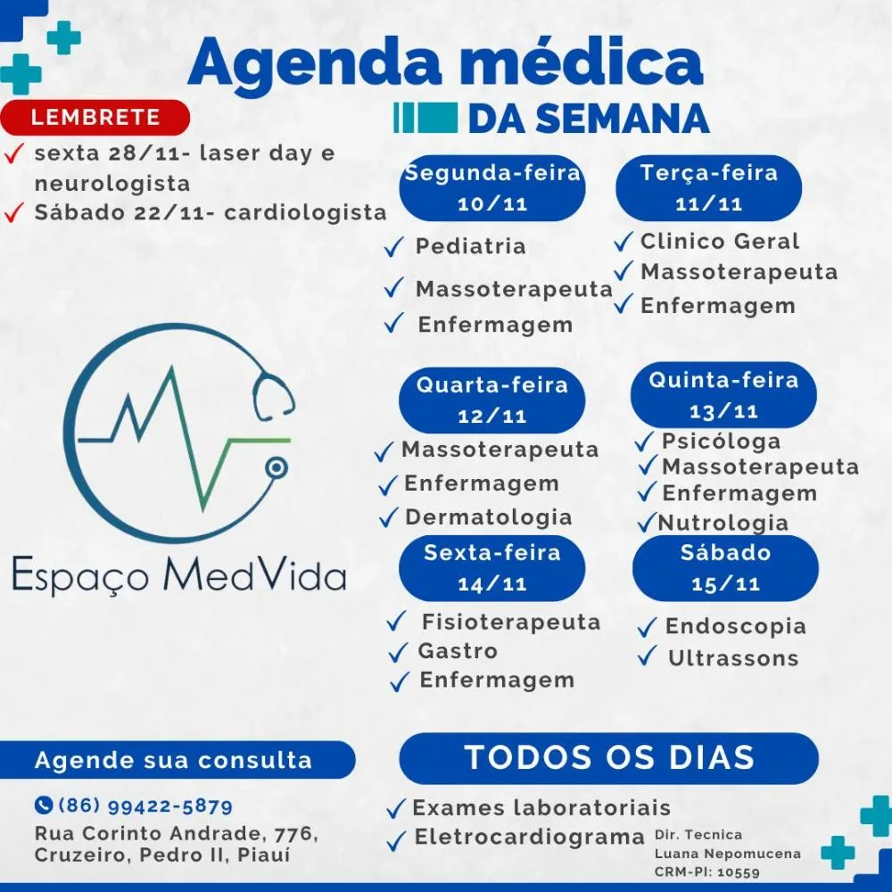 Espaço MedVida Cuidar da sua saúde é o nosso compromisso: confira a agenda da semana no Espaço MedVida