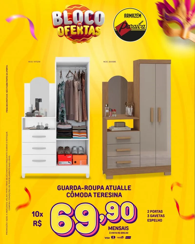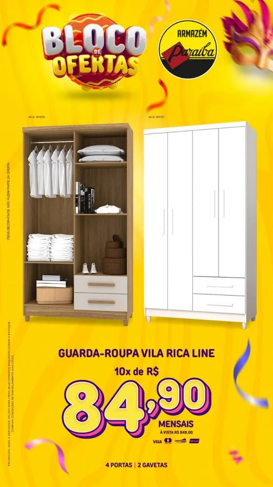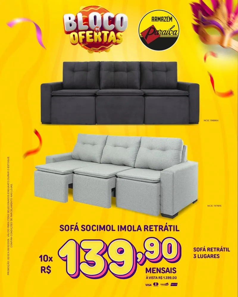 Entre no clima do Carnaval com o Bloco de Ofertas do Armazém Paraíba. São promoções especiais e uma grande variedade de móveis e eletrodomésticos modernos para deixar sua casa ainda mais completa. A equipe está pronta para atender você e ajudar a levar mais conforto e alegria para o seu lar neste período de festa.