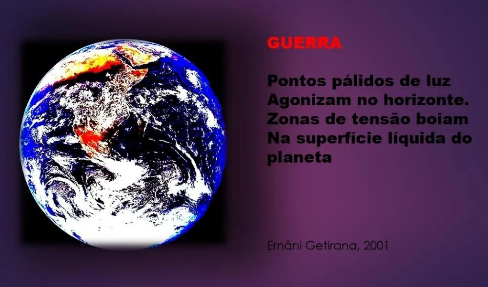 O poema GUERRA faz parte de uma série intitulada “Calendário Poético”, idealizada por Cineas Santos (livraria Curisco).
