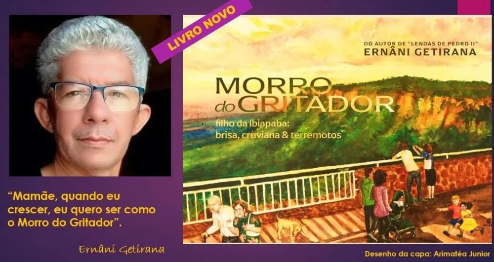 Acaba de sair o mais recente livro do escritor ERNÂNI GETIRANA: "Morro do Gritador, filho da Ibiapaba: brisa, cruviana & terremotos. São 50 páginas, formato 18x26 cm (fechado), com capa do artista plástico Arimatéa Junior, que ainda fez 3 dos 16 desenhos. Os demais são de autoria do autor.