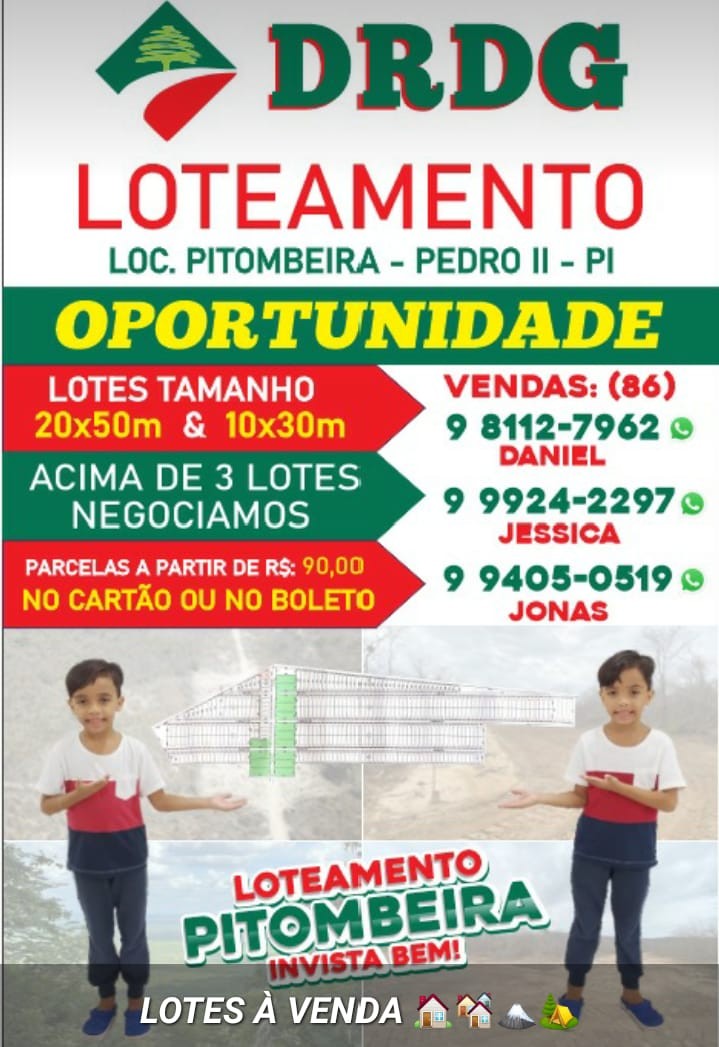 O loteamento Pitombeira está com uma oportunidade imperdível para quem quer adquirir lotes de terra. Contamos com parcelas a partir de R$ 90,00 e você poder pagar cartão ou boleto bancário. Não perca esta oportunidade!!!