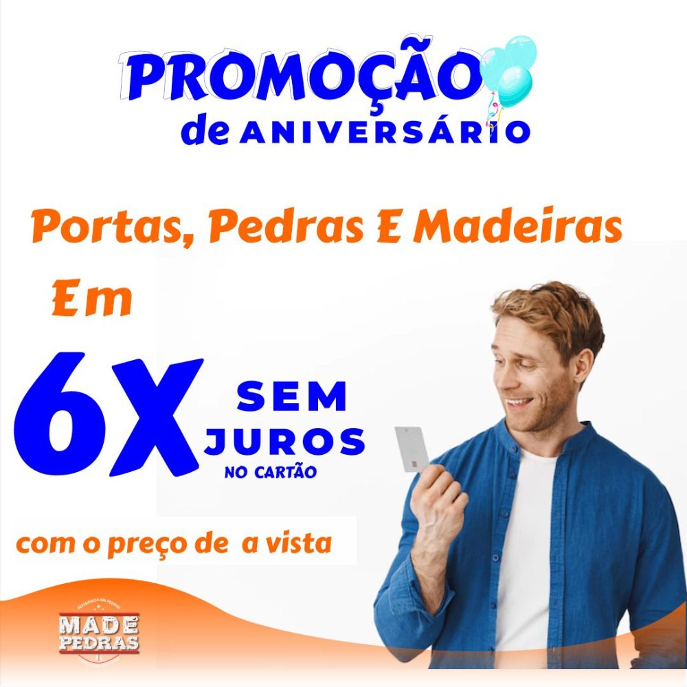 Parcelamos suas compras de portas, pedras e madeiras em até 6X sem juros no cartão e entregamos em toda a região no dia combinado;