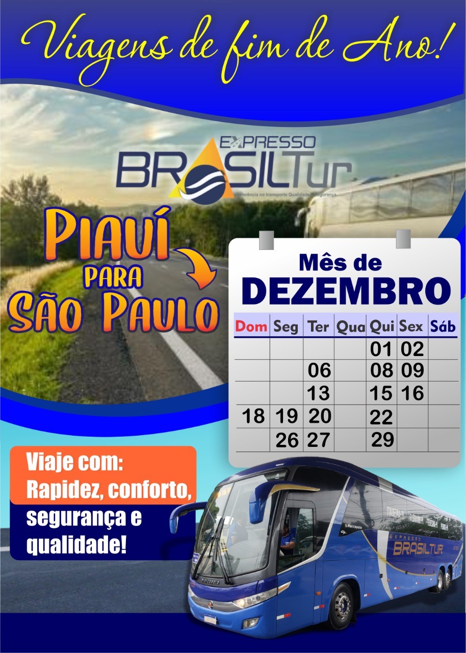 Viagens com saída de São Paulo ao Piauí: QUARTA-FEIRA, SEXTA-FEIRA E DOMINGO.
