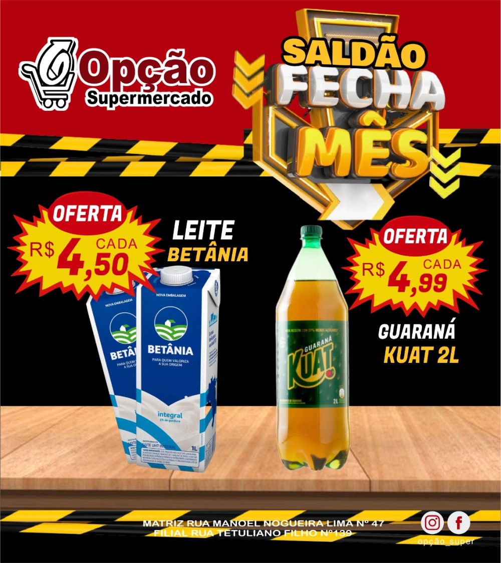 É hora de fazer aquele estoque para o mês e garantir as melhores ofertas! No dia 27 de janeiro, o Opção Supermercado traz a você a promoção Saldão Fecha Mês, com descontos incríveis e produtos de qualidade para você aproveitar.