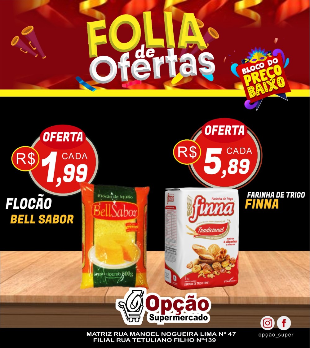 Não deixe de passar no Opção Supermercado e aproveitar nossa Folia de Ofertas. Temos tudo o que você precisa para curtir o carnaval com muita economia.