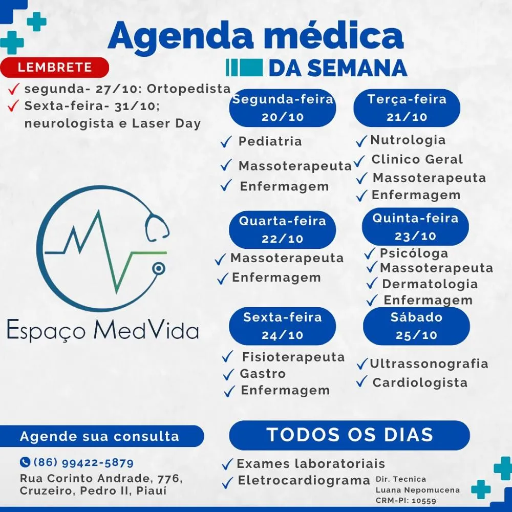 Espaço MedVida Confira a agenda semanal do Espaço MedVida, onde cada detalhe é pensado para o seu bem-estar!