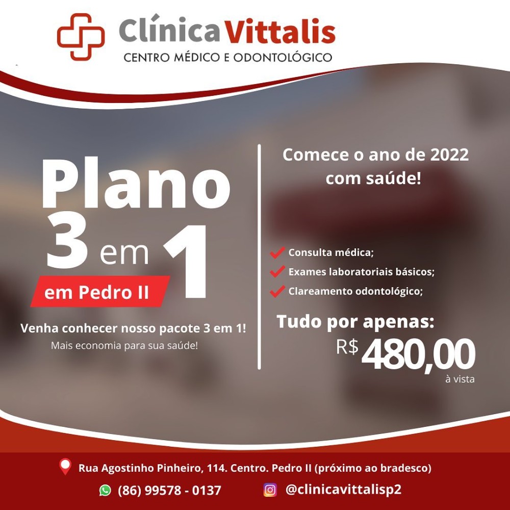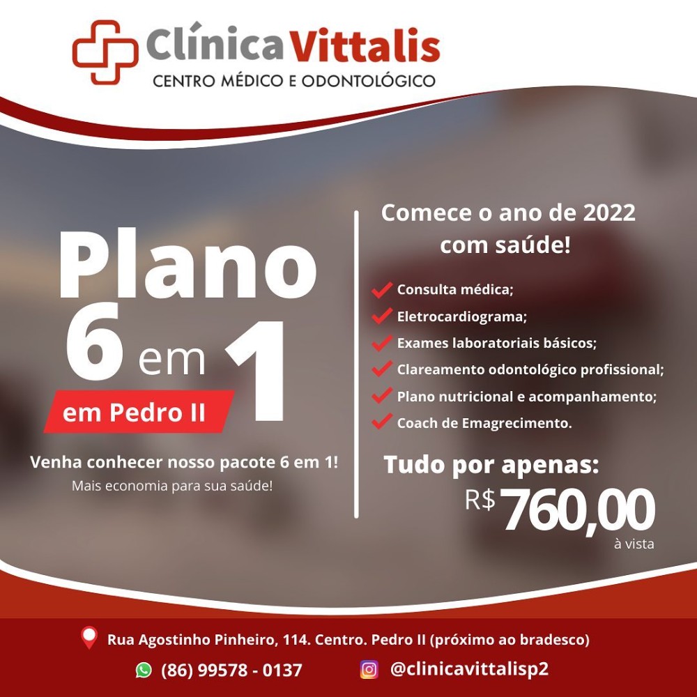 A Vittalis conta com uma Clínica 6 em 1, oferecendo os mais variados atendimentos com: médicos especialistas, dentistas, enfermeiros, nutricionistas, fisioterapeuta e técnico em enfermagem. Lembramos ainda que durante todo este mês de janeiro, estamos realizando planos super especiais para você começar o ano com o pé direito e com a saúde renovada!
