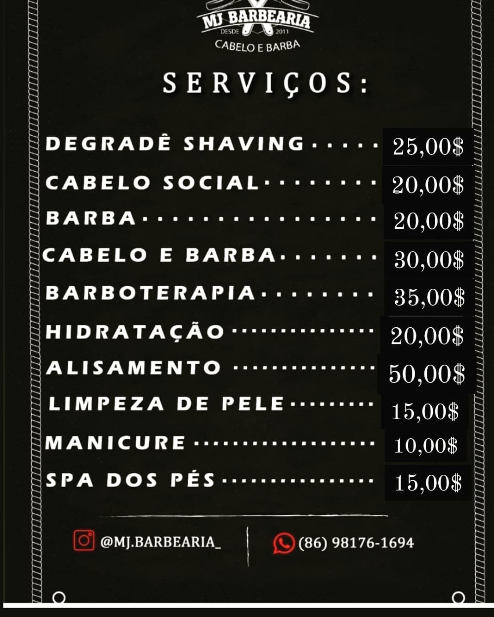 Agende seu horário (86) 9 8176-1694 / @mj.barbearia_