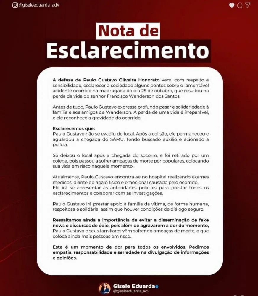 Nota Defesa de motorista se manifesta sobre acidente fatal em Pedro II