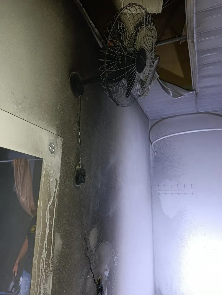 Segundo informações repassadas pelos bombeiros, o foco do fogo teve início em uma caixa de som que estava ligada a rede elétrica e posicionada sobre um sofá. As chamas rapidamente atingiram o estofado, que foi completamente destruído. Um ventilador também foi danificado durante o incidente.