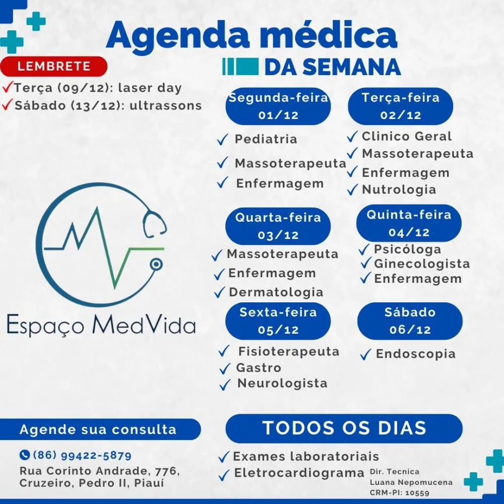 Agenda da Semana no Espaço MedVida: cuidado completo para você e sua família